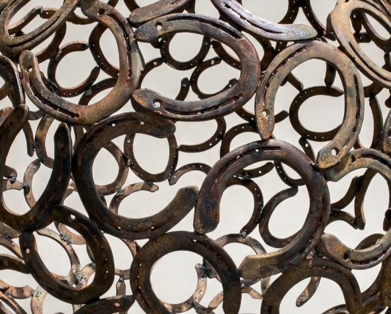 herraduras reales convertidas en escultura.